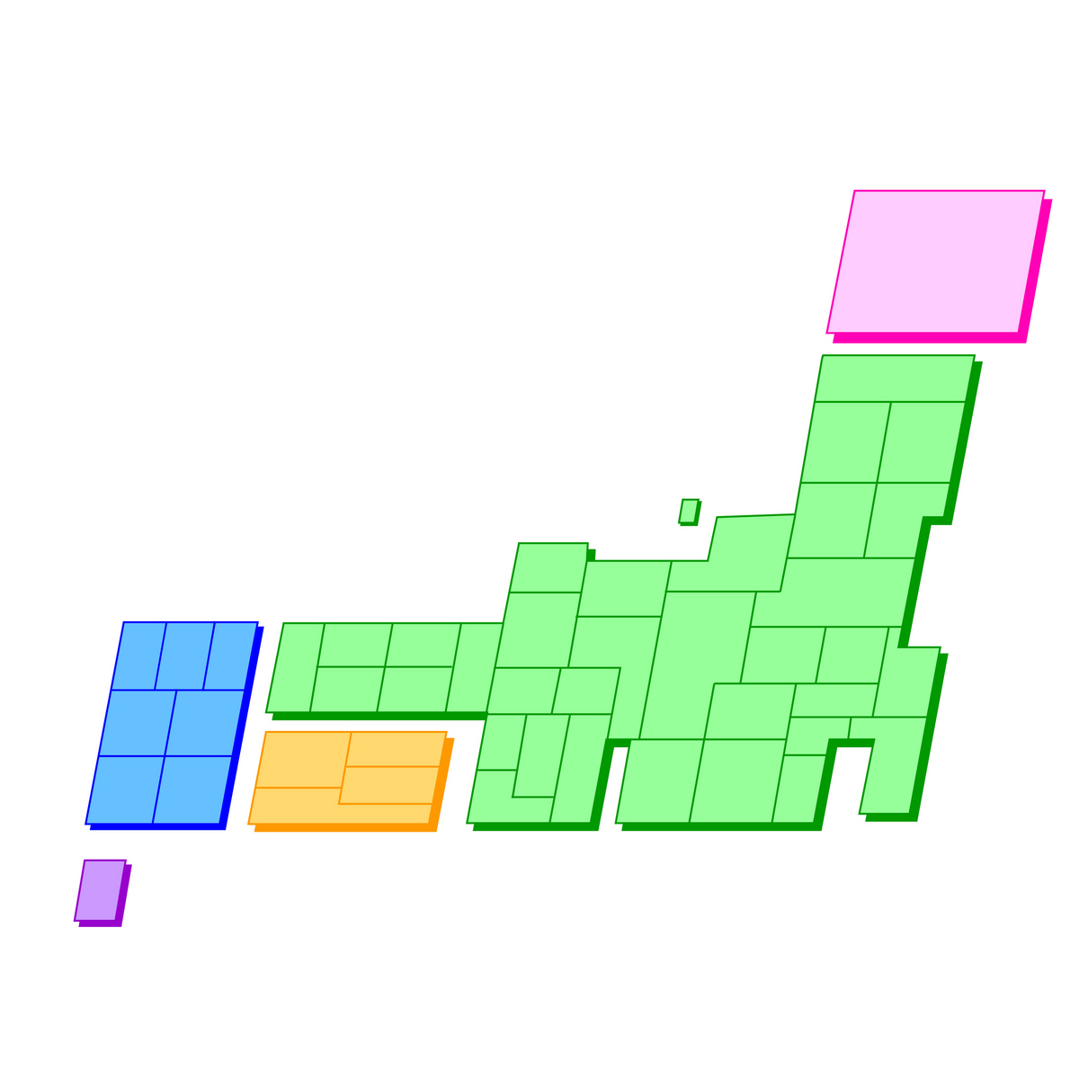 年齢区分別でみると「少子化」「高齢化」がよくわかります。上記グラフでの年齢区分別比率変化は以下のようになります。