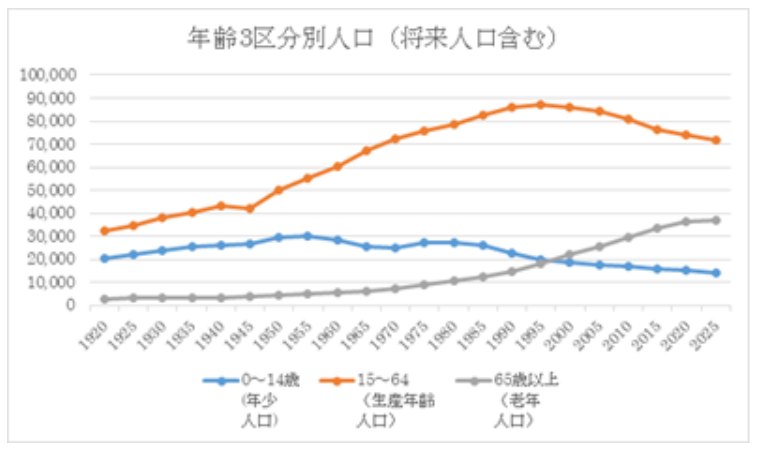 ・1920年 生産年齢人口10人で高齢者1人弱を支える。高齢者は国民の20人に1人。