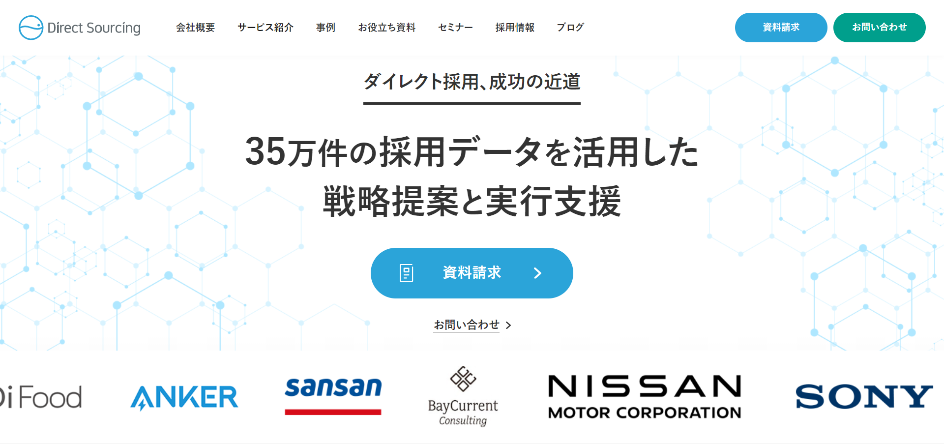 スカウト代行サービスの中でも、株式会社ダイレクトソーシングはおすすめでしょう。株式会社ダイレクトソーシングは2015年に設立され、ダイレクトリクルーティングを中心に事業を展開している企業です。比較的新しい企業ですが、ヤフー株式会社やオムロン株式会社など様々な有名企業が株式会社ダイレクトソーシングのスカウト代行サービスを利用しています。ビズリーチやLinkedinをはじめ20種類以上の採用媒体でスカウト採用の実績がある点からもおすすめのスカウト代行サービスと言えるでしょう。