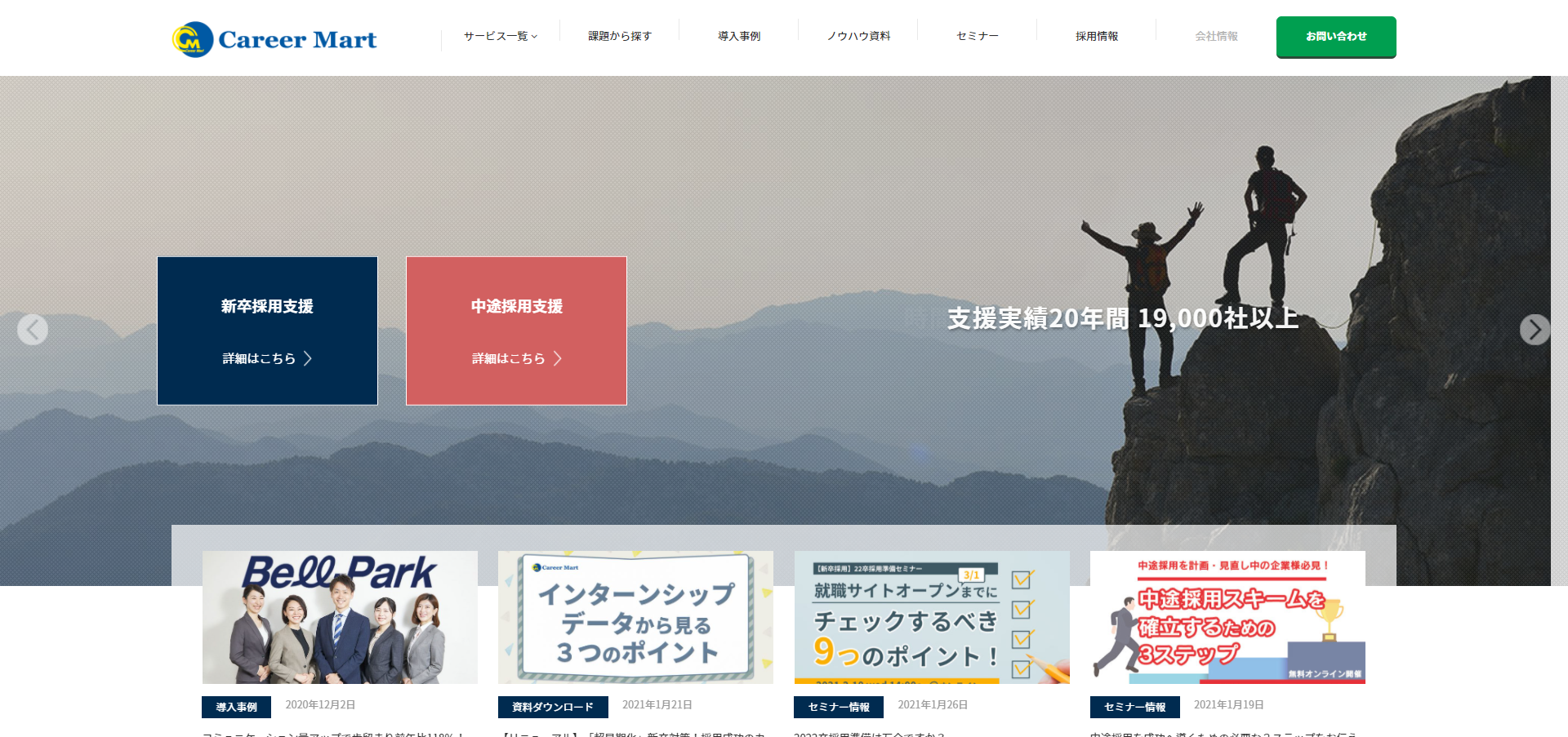 株式会社キャリアマートのスカウト代行サービスもおすすめでしょう。株式会社キャリアマートは2002年に設立された採用アウトソーシングや採用コンサルティングを行う企業。株式会社キャリアマートは過去17年間で19000社以上の採用活動を支援してきた実績があります。またスカウト採用業務だけでなく、その他の採用活動業務を委託できる点も特徴です。新卒採用中途採用ともに実績があり、1か月のみの短期間代行やオンライン採用の対応もしてくれるため、柔軟性が高い採用代行サービスと言えるでしょう。
