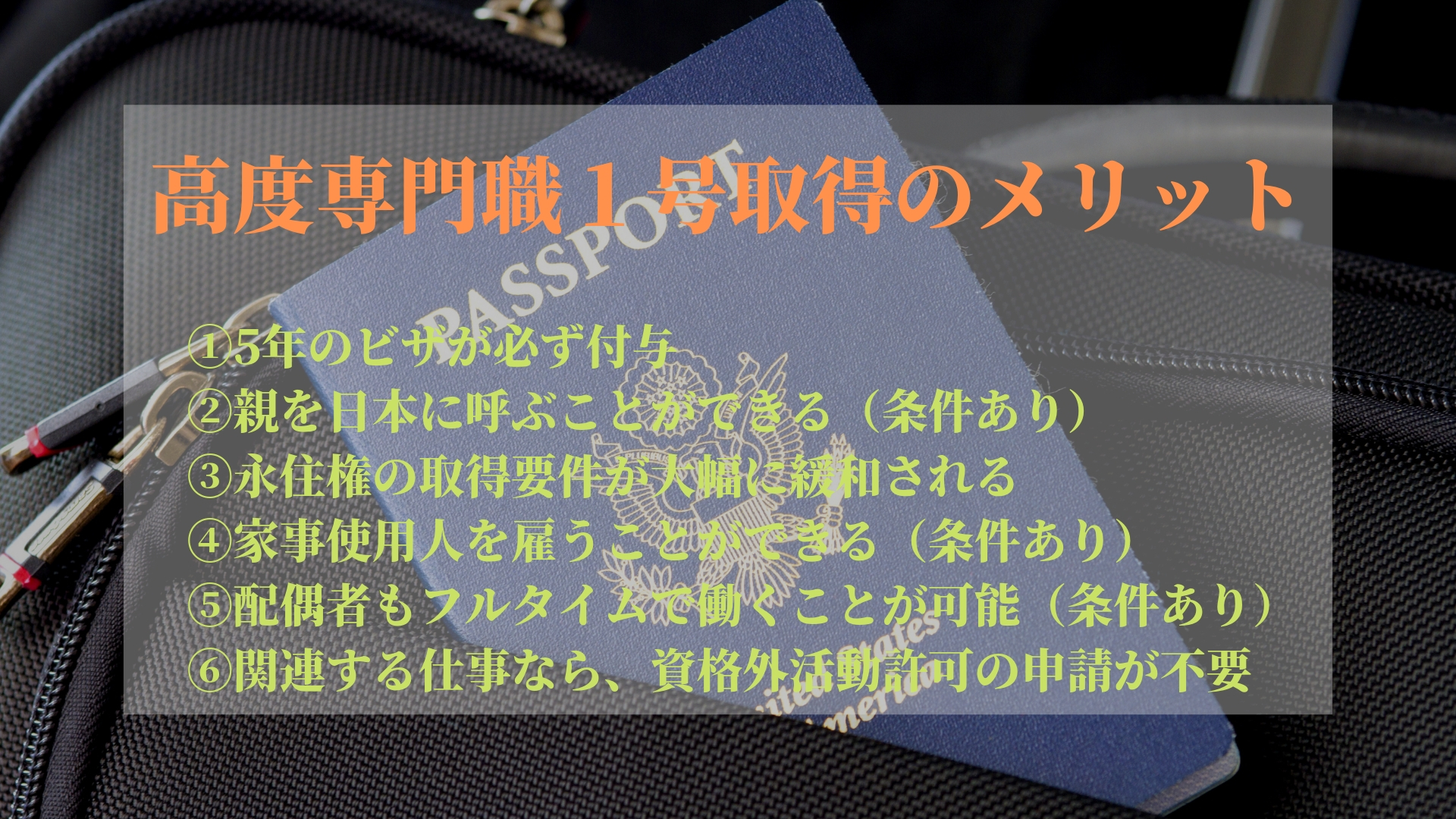 【高度専門職1号を取得することによって得られるメリット】