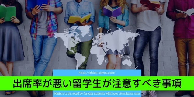 留学生は、「留学」というビザを持っており、6か月や1年、2年などといった人によってその在留期間は異なります。ですので留学を続けるには、留学ビザを更新する必要があり、その際には学校での出席率や成績が審査されます。出席率や成績が悪いとビザの更新が不許可となり、日本から出国しなければいけなくなるため、なぜそうなってしまったのかを自ら説明する必要があります。成績については、その方の学力も関係してくるため、一概には言えませんが、出席率に関しては現在通っている学校によって基準が異なってきます。