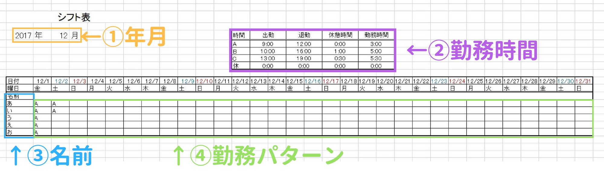 従業員全員が、おそらく毎日シフト表を見るでしょう。どの従業員にも「わかりやすい」ことは必須の条件です。