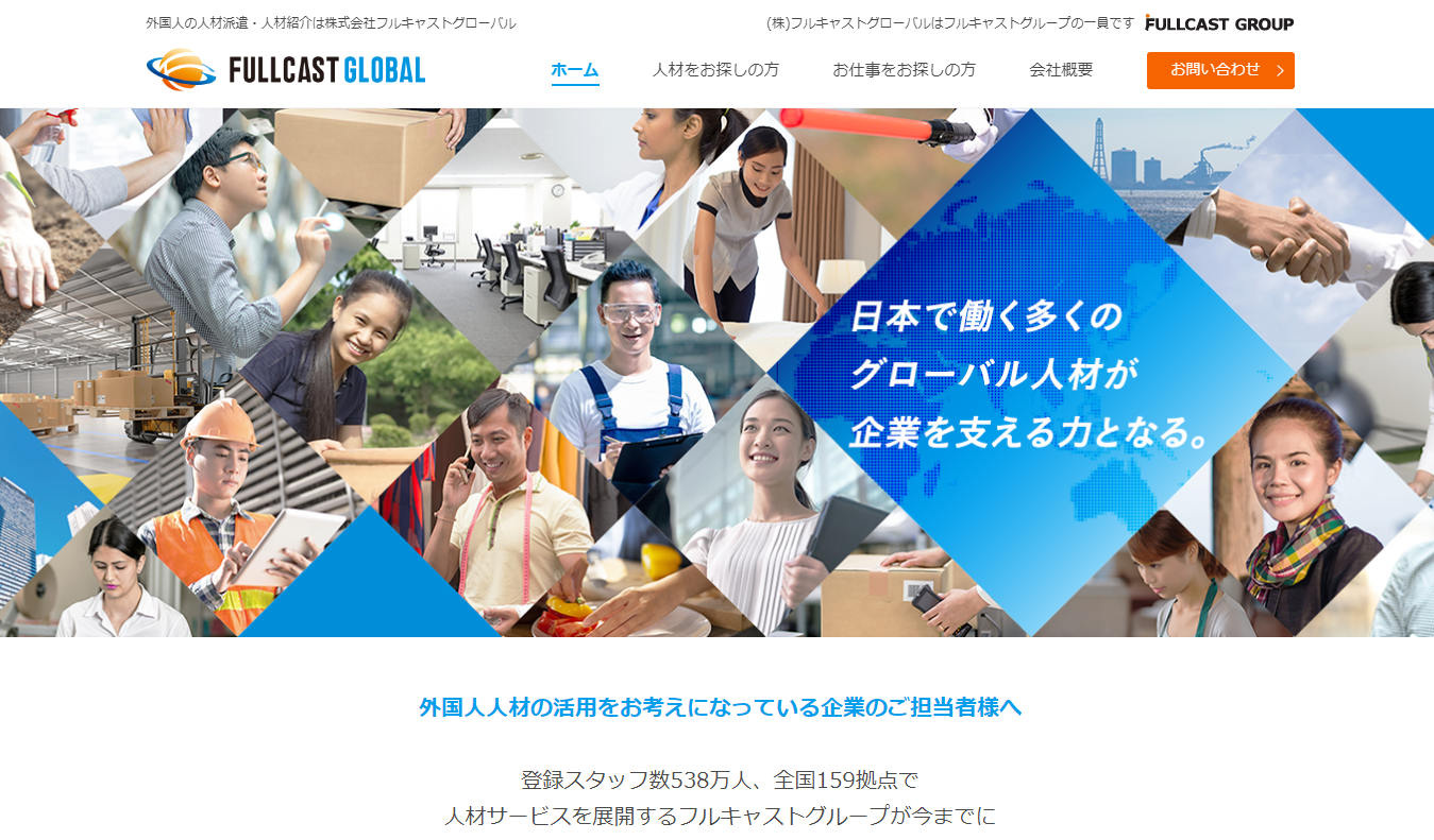 外国人派遣を行っている会社のおすすめの1つに、株式会社フルキャストグローバルがあります。株式会社フルキャストグローバルの特徴は、一日単位で外国人求職者を派遣できる点。繁忙期で人手が足りない時など短期や単発で外国人を雇いたいと考えている企業におすすめでしょう。また株式会社フルキャストグローバルは派遣する前に日本語の語学テストを行っています。日本語で会話できるか不安視している雇用主の方にもおすすめかもしれません。