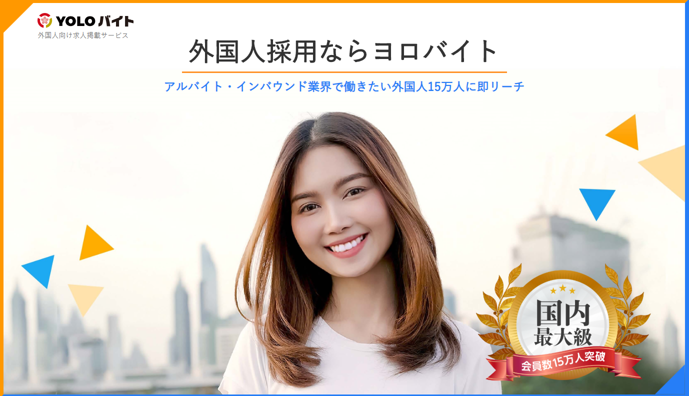 外国人求人広告の中でもおすすめの媒体としてYOLOバイトがあります。YOLOバイトは株式会社YOLO JAPANが運営している外国人向け求人広告サイト。2016年にリリースした比較的新しい外国人向け求人サイトですが登録者は16万人以上、登録国籍数は266か国と多くの外国人求職者を集客しています。YOLOバイトの特徴は、外国人向けの案件が少ない単発やモニターの仕事も扱っている点。単発の仕事やモニター案件で外国人を雇いたいと考えている企業にはおすすめの外国人求人広告媒体と言えるでしょう。