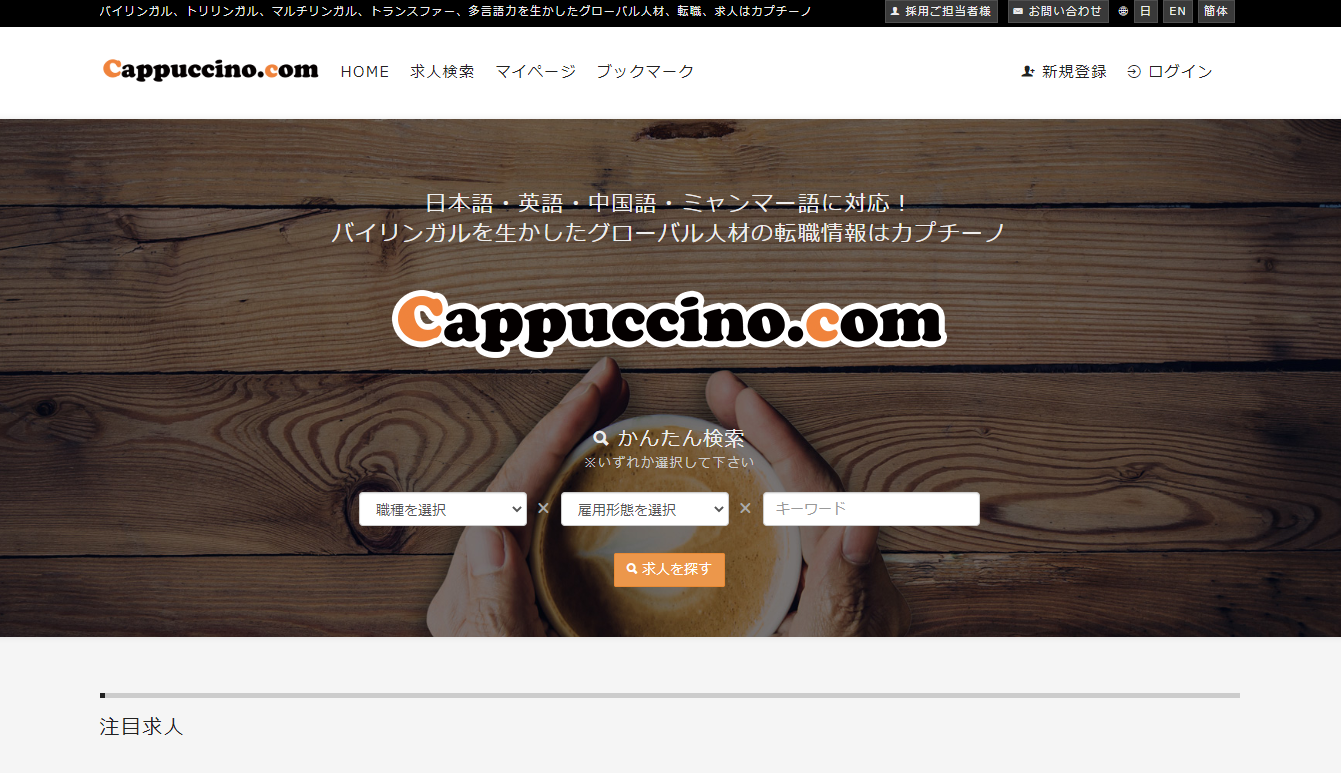 外国人求人広告の中でもおすすめの媒体にCappuccino.comがあります。Cappuccino.comはバークレイグローバルコンサルティング&インターネット株式会社が運営している外国人向けの求人広告サイト。Cappuccino.comの特徴は利用する際の料金プランでしょう。Cappuccino.comの料金プランには3種類があり、月5万円から利用可能です。またCappuccino.comの場合、何人採用したとしても求人広告の掲載料金のみの費用しかかかりません。一度に多くの外国人求職者を雇いたいと考えている企業におすすめの求人広告媒体と言えるでしょう。