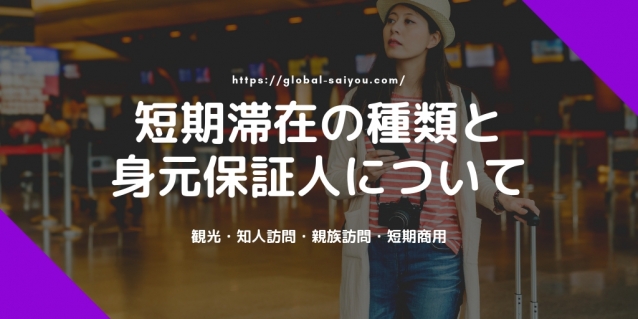 短期滞在の手続きに必要になってくるのが、“身元保証人”です。この身元保証人が確保できないと、短期滞在のビザは取得できません。