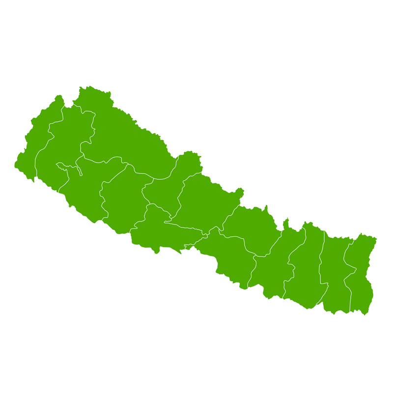 ネパールといえば、標高8,848mの世界最高峰の山であるエベレストでしょう。山頂は中国とネパールとの国境上にあります。ネパールの面積は14.7万平方キロメートルで北海道の約1.8倍。人口は2018年の統計で約2950万人、世界の中では人口数100位以下の国です。南アジアに位置し、東西南がインドに隣接し、北が中国チベット自治区に隣接している、いわばインドと中国という大国に挟まれている東西に細長い小国です。