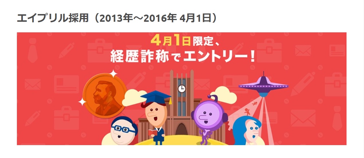 カヤックは嘘の履歴書を受け付ける採用を実施しました。履歴書は2013年4月1日限定で受け付けました。カヤックは嘘をつくのも才能と考え選考を行い、面白い嘘をついた2名を書類審査通過にしました。