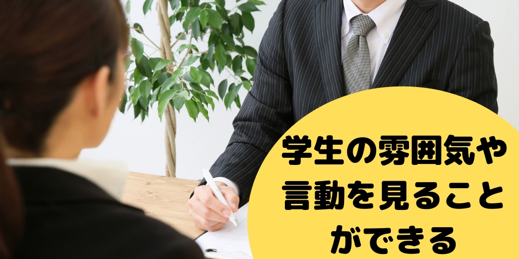 面接試験は学生を企業に呼び対面で会話する選考です。直接的に学生を見ることができるため、雰囲気や言動など書類選考ではわからない要素を見ることができます。