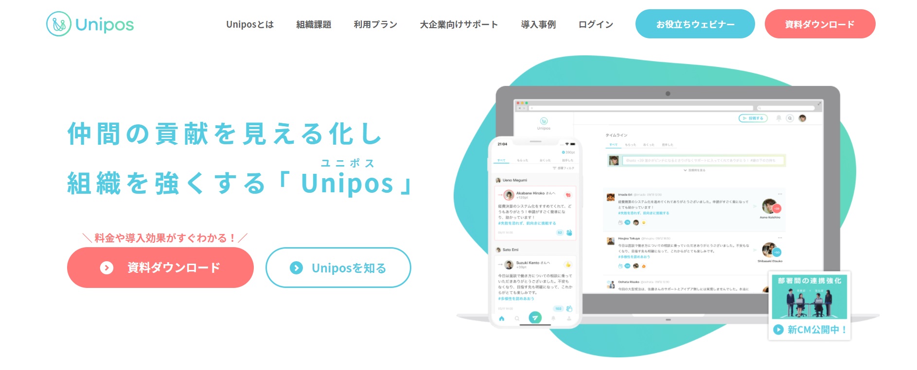 最後にピアボーナスのツールをご紹介しておきましょう。代表的なツールが先述のメルカリでも導入されている「Unipos(ユニポス)」。同僚からの感謝の気持ちと合わせた少額のボーナスを、スマホやチャットなどを通して、気軽に送受信できるシステムです。SlackやChatwork・Workplaceなどのビジネスチャットツールと連携ができ、投稿はタイムラインで共有できるほか、ハッシュタグで行動指針と紐付けることができます。良い投稿には「拍手」で賞賛でき、所属する組織で望まれる行動がより可視化されますね。企業の行動指針や企業文化との紐付けが可能です。
