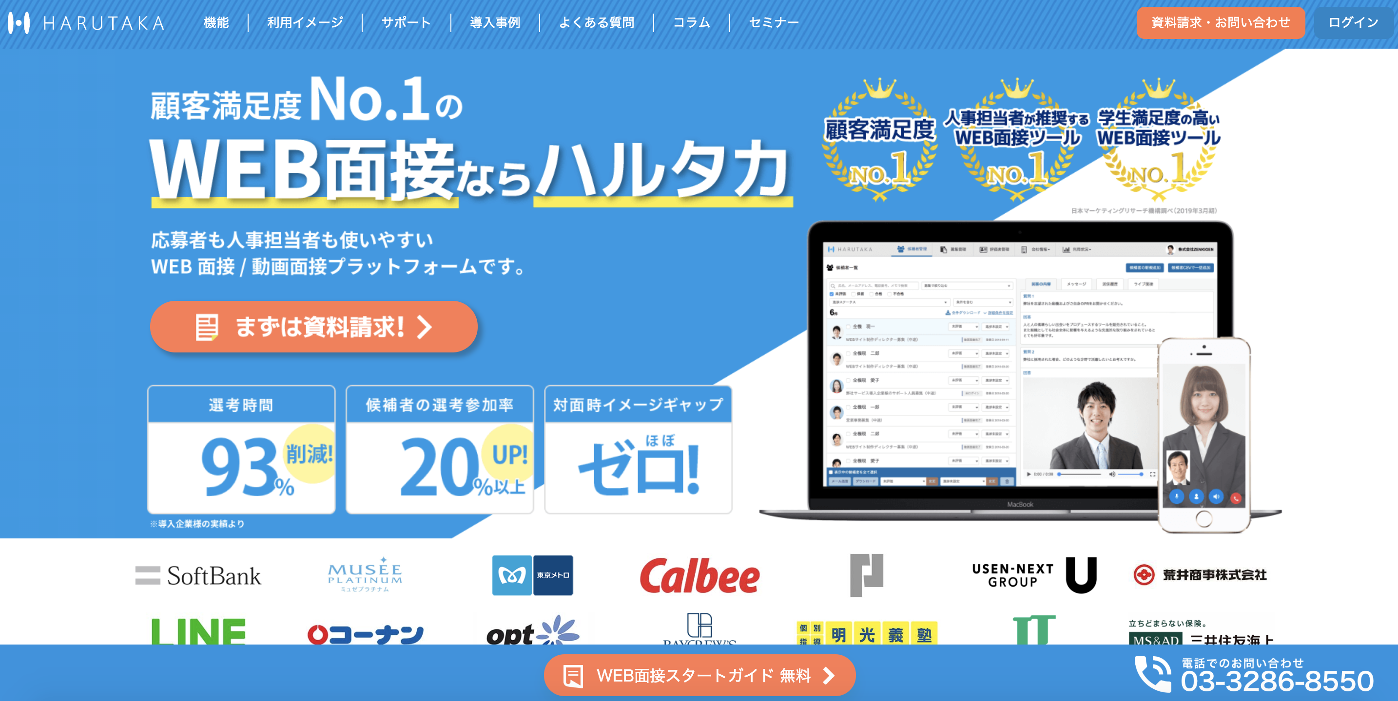 HARUTAKAは、株式会社ZENKIGEN社がリリースしているオンライン面接、録画面接ツールです。大手企業の導入実績もあり、チャット機能や採用分析機能など機能面も充実。応募者から送られてくる録画データを確認し、その場で合否判断、次の選考日時もチャットで簡単に伝えることが可能です。また、アプリが不要なので求職者が思い立ったらすぐにWEB経由でエントリーすることができ、精神的障壁も低く、数多くの応募を得ることに繋がります。