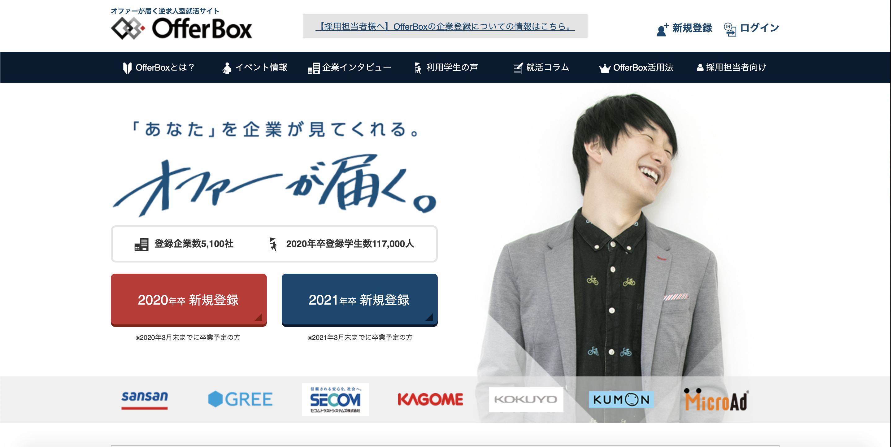 オファーボックスとは、就活生が公開しているプロフィールを企業が見て、オファーを送るというサービスです。参加企業が多いことが特徴で、2019年6月現在で5000社以上もの企業が参加しています。就活生によっては、多ければ一人に40件以上のオファーが集中することも。また、就活生は企業からのプロフィール閲覧数をチェックできるため、オファーが来ないときでもアクセス数を見て励みにしています。スマホアプリでもこまめにチェックできるため、モチベーションのある学生を確保しやすいことも強みです。