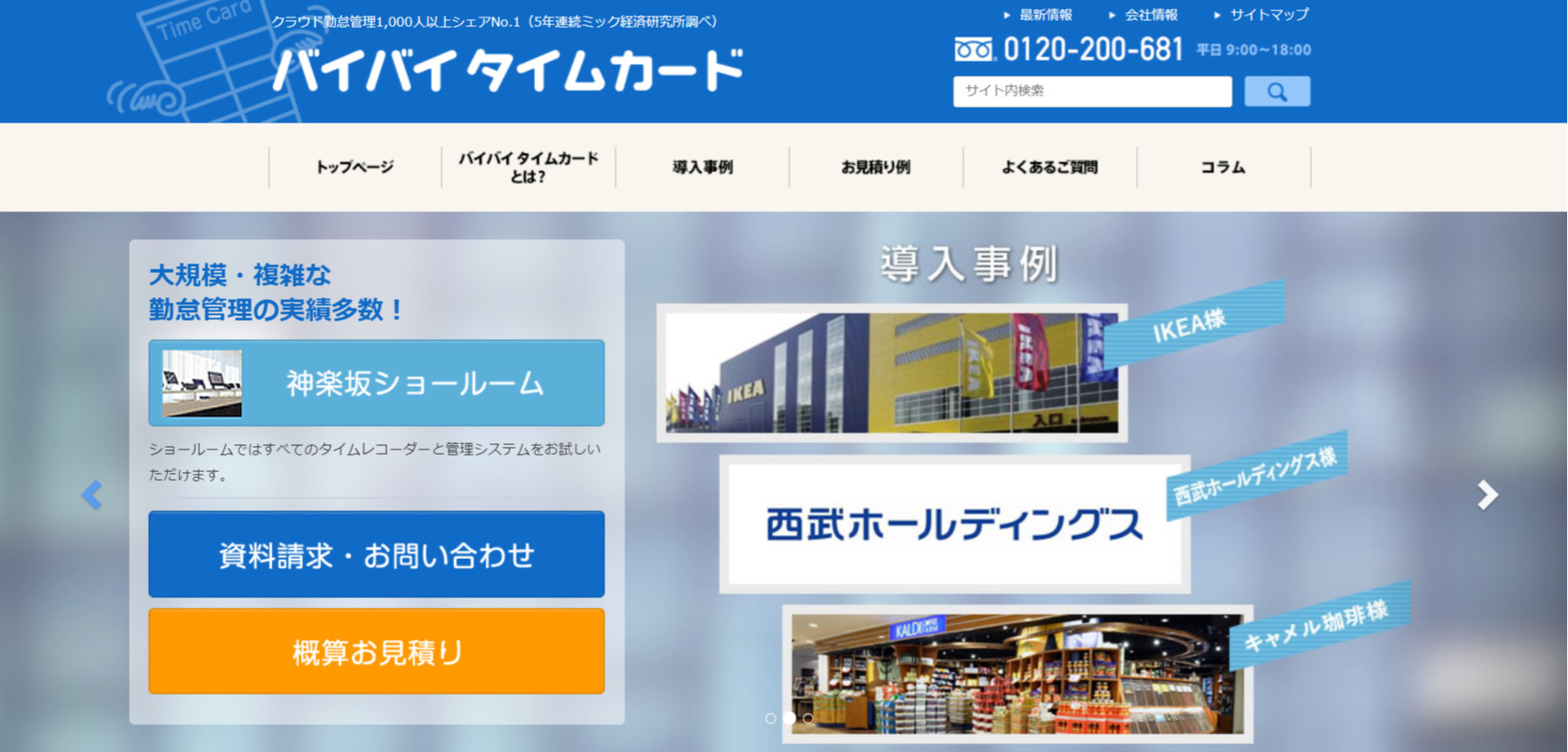 バイバイタイムカードはレスポンスタイムが早く、ストレスフリーな勤怠管理が実現可能です。ソフトの価格は利用する機能や従業員数によって見積りとなります。以下、標準価格で見てみます。「バイバイタイムカード」の概略機能としては、WEB打刻機能、携帯電話打刻機能、交通系ICカード打刻機能、指紋・指静脈打刻機能など。推奨社員数は1,000人以上。連携サービスは、弥生給与、給与奉行、PCA給与、TKC、SAP、ORACLE EBS、SMILEシリーズ、OBIC7など。初期費用が250万円からで、利用価格月額が12万円です。あくまでも標準価格なので詳細は見積りの依頼をしましょう。