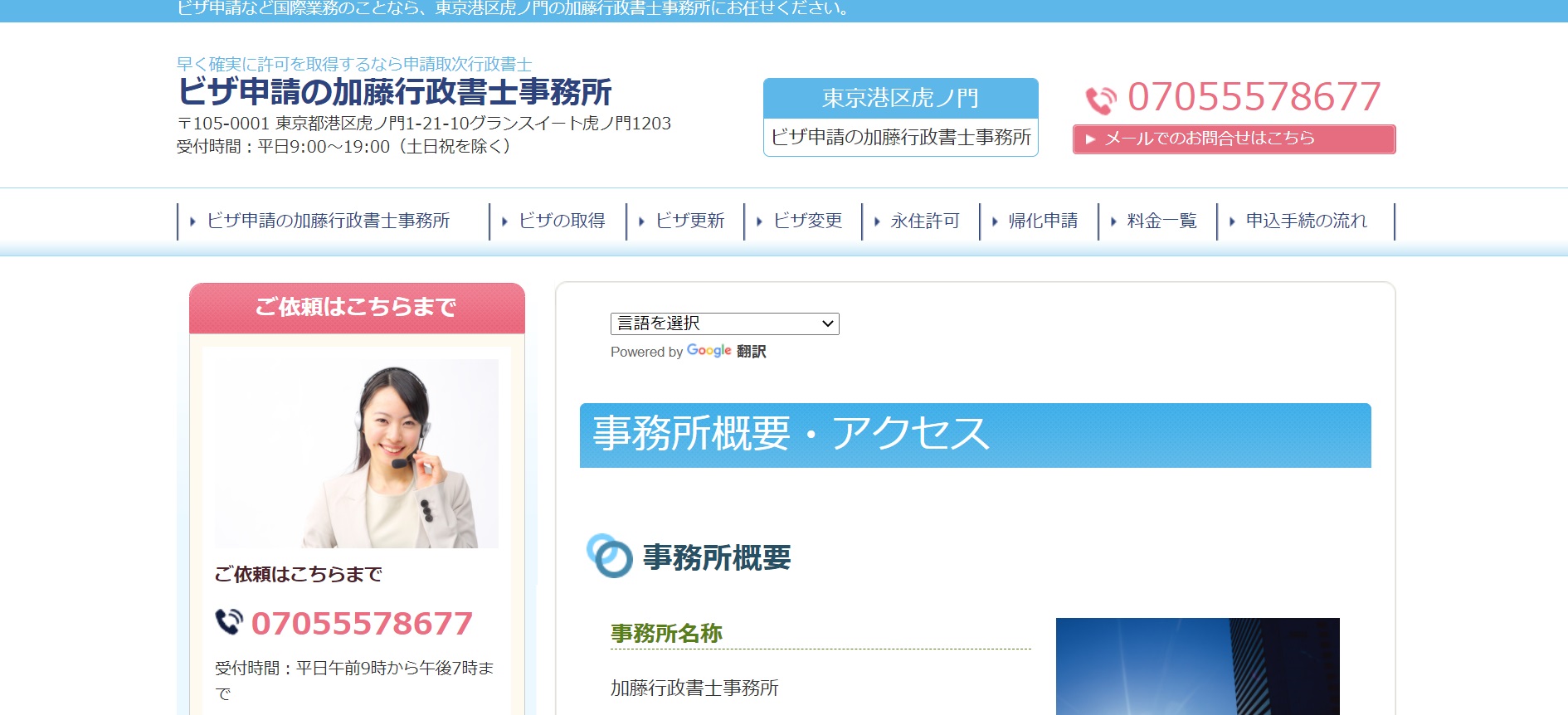東京都港区にある加藤行政書士事務所は、開業以来から入国管理局へのビザ申請を中心業務として行っている国際業務に長けている行政書士事務所です。申請書類の作成に留まらず、入国管理局への申請を代行してくれるので入国管理局へ出向く手間も省けます。許可取得率100%と不許可になったケースが一度もないため、安心して依頼することができるでしょう。さまざまなビザにも精通しているので、ビザ申請が初めての人でも安心して利用できる事務所です。