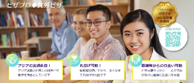 ビザプロ・就労ビザは、外国人が日本で働くための就労ビザ申請を専門で行っている行政書士事務所です。自己申請したものの不許可になってしまった人など、さまざまな要因で申請が降りなかった人に対して、面接時からの立会いを行うなど手厚いサポートがあります。まさにビザ申請のプロ集団。中国・韓国に加え、近年増えてきているネパール・ベトナム・台湾・ミャンマーなど、アジア出身の外国人就労ビザの取得を得意としています。