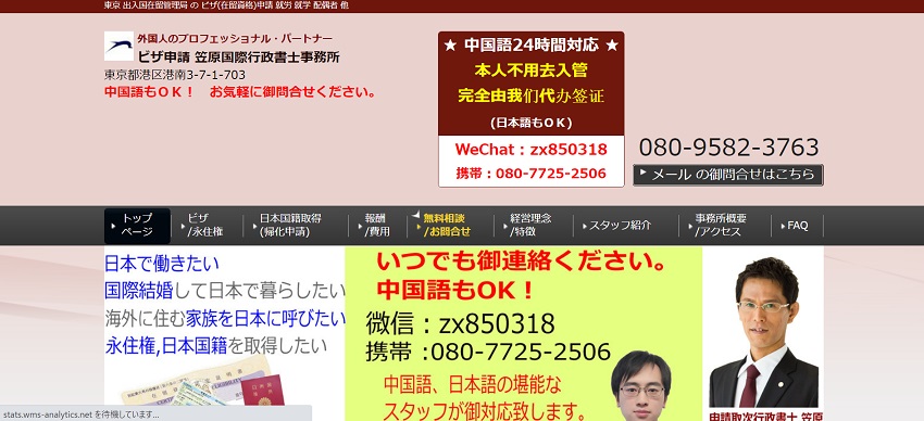 笠原国際行政書士事務所は、英語以外にも中国語にも対応しているビザ申請を得意とする行政書士事務所です。日本で働くことを許可する就労ビザ以外にも「国際結婚をして日本で暮らしたい」「永住権や日本国籍を取得したい」といった行政関連の申請書類を依頼することも可能。子供のビザを取得するには、親のビザの種類によっても異なるなど、日本で生活すると申請だけでなく、さまざまな問題も出てきます。その点、幅広いサポートに対応しているため人気を集めています。
