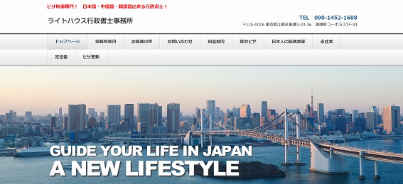 東京都江東区に所在するライトハウス行政書士事務所は、中国語・韓国語にも対応している行政書士事務所です。95%を誇る成功率、かつ完全成果報酬制なのでビザが許可されない場合は全額返金されます。対応地域は、東京都・千葉県・神奈川県・埼玉県と限られていますが、最短で即日相談もできるのが嬉しいポイント。申請を担当する行政書士が、書類作成から手続終了まで代行してくれるので、入管に行く手間を省くことができます。