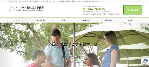 外国人の就労ビザをメインとし、就労ビザ取得率99%超の実績のあるC.S.AND P.行政書士事務所。就労ビザを変更する際に必要な「在留資格変更許可申請」「転職した際の所属機関変更の届出」など、外国人が日本で働く際の細かな行政手続きを代行します。必要書類の案内や申請書類のチェックは、15,000円(60分)〜と依頼者の希望に沿ったプランを多数用意。発行手数料などは別途必要ですが、チェックのみお願いしたい場合は低価格で依頼できるのも嬉しいポイントです。