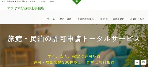 東京都港区に所在するマツヤマ行政書士事務所は、民泊・旅館の申請やビザ申請の代行業務などを行う行政書士事務所です。申請書類のチェック・アドバイスは3万円~、就労資格証明書交付申請は5万円~を用意。もしも、申請許可が取れなかった場合は、法定費用と報酬を含めて全額返金されます。代行業務を依頼すると入国後の各種手続き、ビザ更新許可申請などのトータルサポートが受けられるので、許可後の再申請忘れなども未然に防ぐことができます。