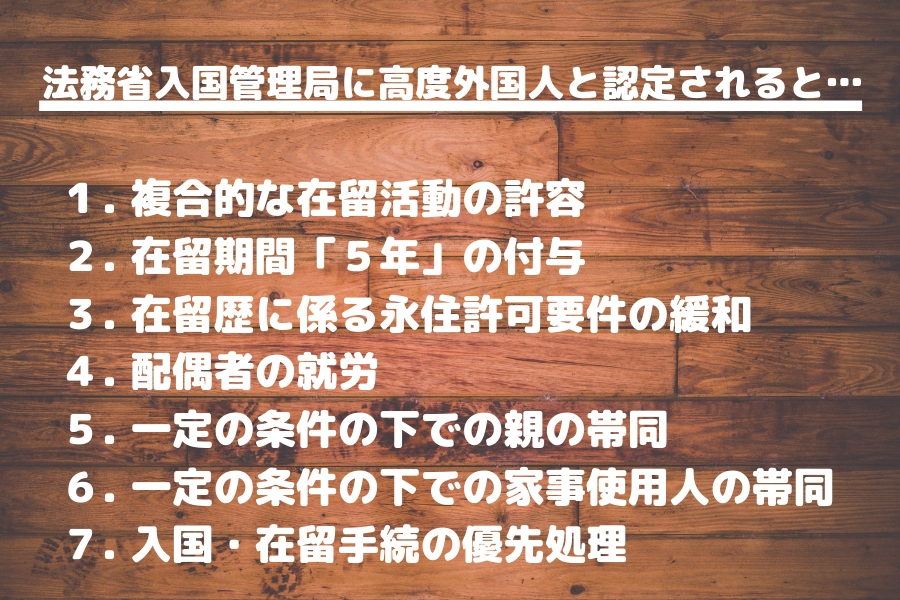 外国人高度専門職のメリットとは、やはりすでに記述した7つの優遇を受けられることでしょう。