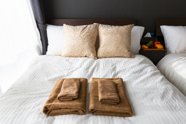特定技能「ビルクリーニングではホテルの仕事であるベッドメイキング業務も従事可能になりました。ビルクリーニングと聞くと清掃のみのイメージを持つ人もいるかもしれません。しかし現在の特定技能「ビルクリーニング」は建物内の清掃だけでなく、ホテルの客室のベッドメイキングも作業の1つとみなされるようになりました。特定技能「ビルクリーニング」を利用して日本で働く際必要となるビルクリーニング分野特定技能1号評価試験の問題にもベッドメイキングに関する問題が出題されています。