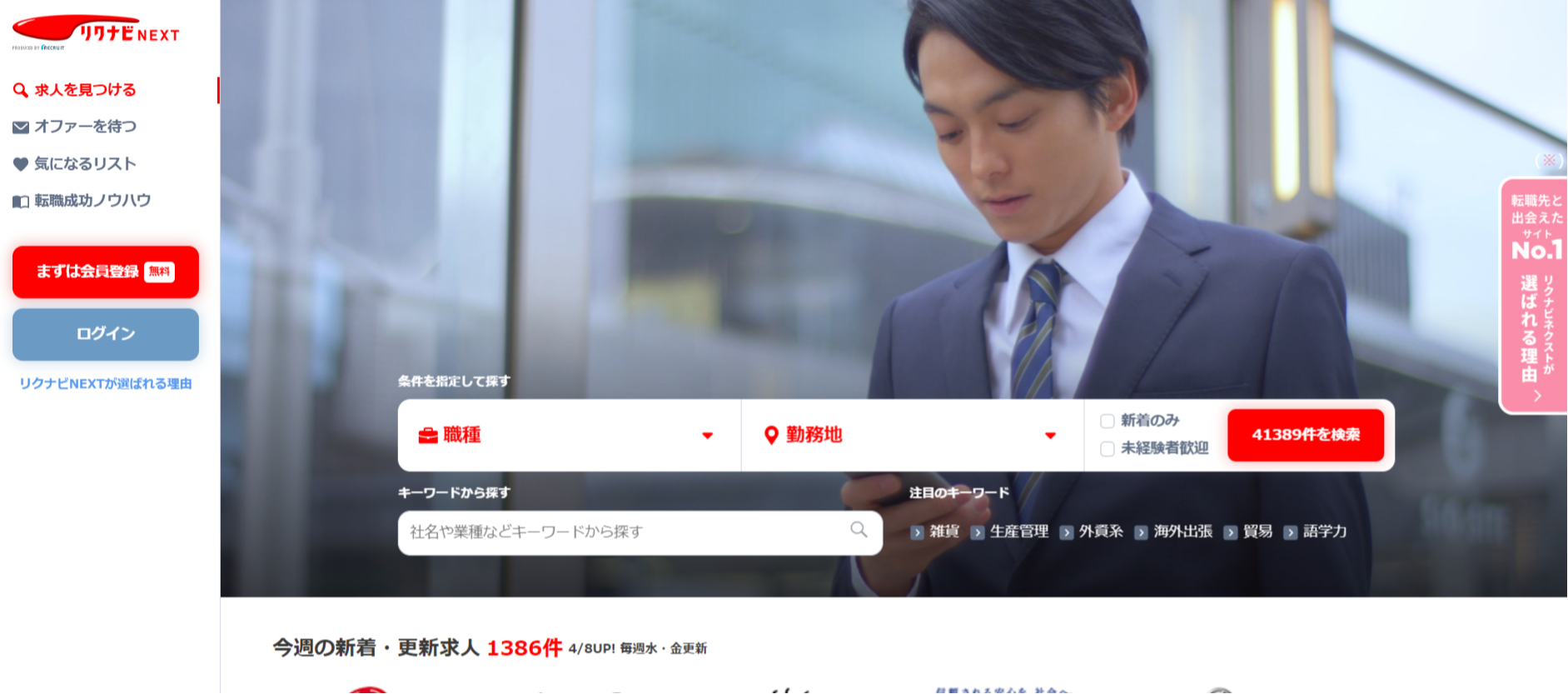 リクナビNEXTはリクルートが運営している転職サービスで、大手企業からベンチャー企業まで多くの企業が求人情報を掲載しています。また、リクナビNEXTは転職者向けの採用サービスなので、新卒採用の企業と区別ができるというメリットがあります。リクナビNEXTでは、転職したい人が検索のフィルターをかけて検索ができるので、使いやすいですね。リクルートが運営しているというのもポイントで企業的信頼度も高いので、転職者は安心して利用ができます。また、リクナビNEXTには多くの営業関係者け優秀なメンターがいるので、企業にピッタリな人材を紹介してくれます。カジュアル面談を希望している転職者がいたら、検索の画面からカジュアル面談で検索をかければすぐに表示されるので便利ですね。転職サービスでは上位を争うサービスでもあるので、おすすめです。