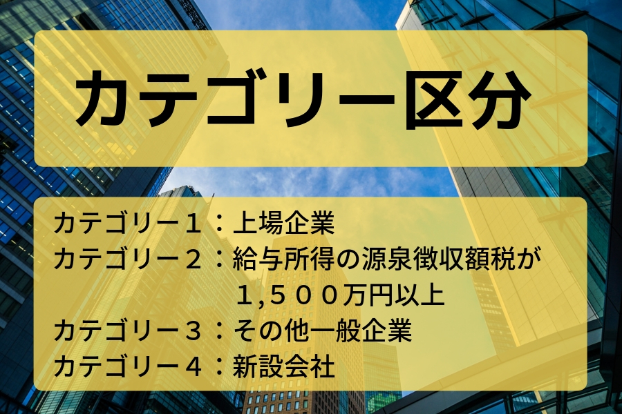 入国管理局では、企業規模について4つのカテゴリーに区分をしています。簡単にまとめると下記になります。