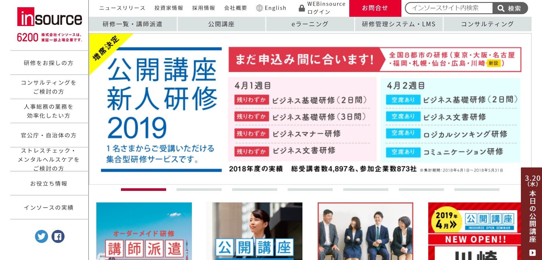 insourseでは、コンプライアンス研修の講師派遣を行っています。研修評価で90%以上の良い評価を獲得している人気のプランです。講師派遣以外にもDVDやeラーニングでの講習も行っています。