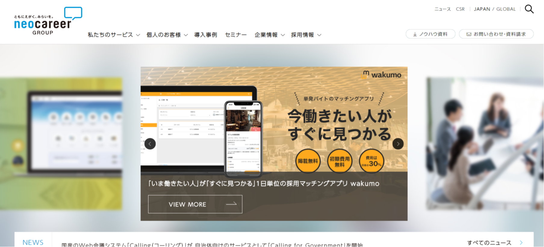 ネオキャリア(neocareer)は、新卒・中途採用コンサルティングを得意としているベンチャー企業です。最近では、LINEで学生とやりとりができ、採用管理もできるコミュニケーションツールを導入。最新のトレンドを取り入れと若者の採用に悩みを抱えている企業の採用活動の改善を行っています。また、インターシップ支援や育成研修プログラムなども実施し、せっかく内定を出した優秀な内定者の辞退を防ぐことにも繋がるでしょう。