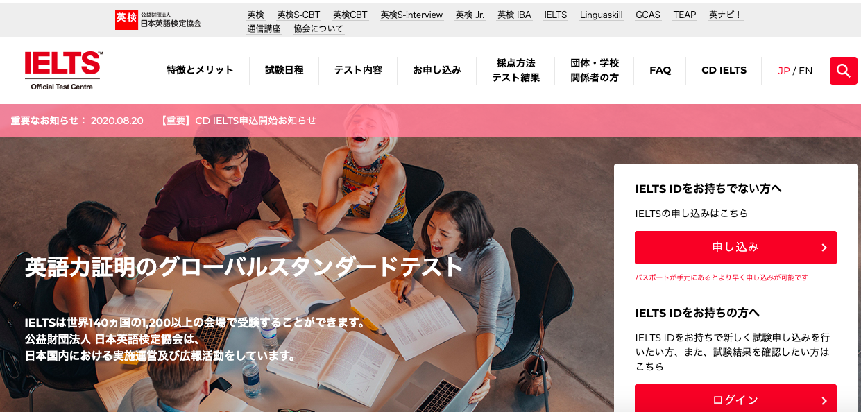 IELTS(アイエルツ)は英語圏への留学・移住を志す人の英語能力を評価するために作られたテストで、全世界で年間300万人以上が受験するものです、学業目的の「アカデミック・モジュール」と、英語圏での学業以外の研修・移住を目的とする「ジェネラル・トレーニング・モジュール」の2種類があり、大学入試には前者のタイプが有効。スピーキングレベルをネイティブとの1対1での面談で評価する点が特徴的で、それ以外の能力は紙ベースの筆記テストで測られます。現状では主要15都市のみでの試験開催となっています。