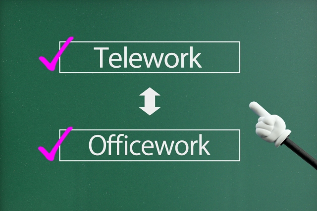 ハイブリッドワークとは、テレワークとオフィスワークを組み合わせた働き方のことです。テレワークは自宅などで会社に出社せずに仕事を行うことを指し、オフィスワークは会社に出勤して仕事を行うことを指します。出社するか在宅で仕事をするのか、社員が自分の状況に合わせて選択することができます。例えば週3日は会社で週2日は家で仕事をするなど、柔軟な働き方が可能となるのです。ハイブリッドワークとは、テレワークとオフィスワークのどちらか1つに絞るのではなく、働く場所を自由に選択できるというのが基本的な考えです。