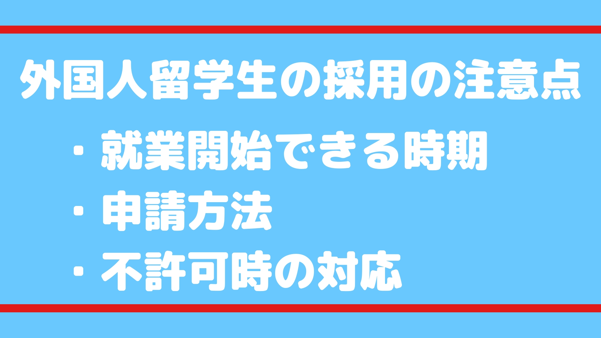 外国人留学生を採用する際には、外国人の専攻科目と職務内容のリンクが大切になりますが、その他にも大まかに下記3項目は事前に把握しておきましょう。