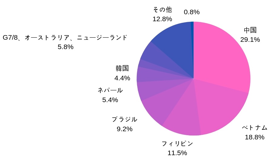 それぞれ、日本の企業で働く外国人労働者を、国籍別で紹介していきます。