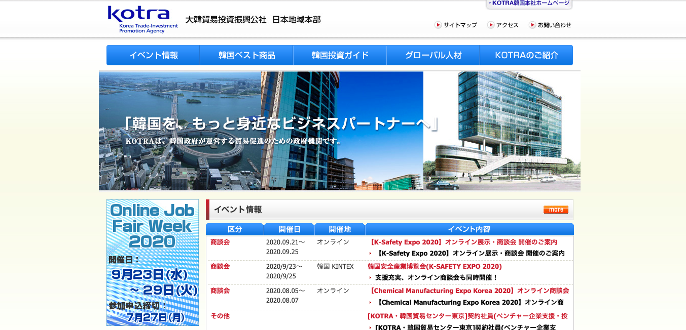KOTRA 大韓貿易投資振興公社も韓国で現地面接会を開催している企業の1つです。社単独で会社説明会や面接会を行う際の支援もしています。韓国での直接採用の経験が無い方でも安心して利用できると言えるでしょう。また、韓国人採用を検討中の日本企業に向け、韓国人材採用セミナーも実施しています。韓国人採用に当たって大切なポイントやノウハウを知ることができます。事前にセミナーに足を運び、韓国人採用のポイントを押さえておくことで、スムーズに採用することが出来るでしょう。