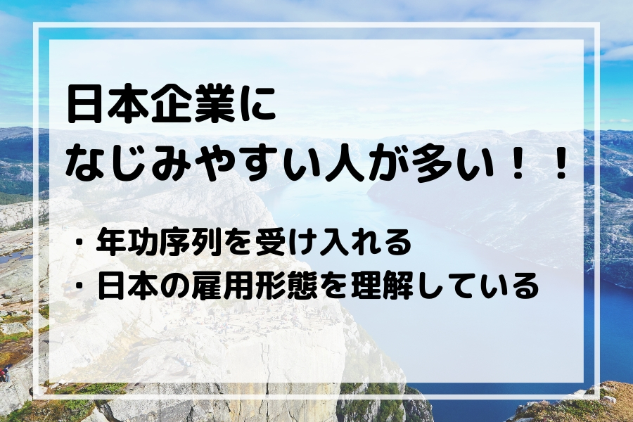・日本企業について理解が深く馴染みやすい