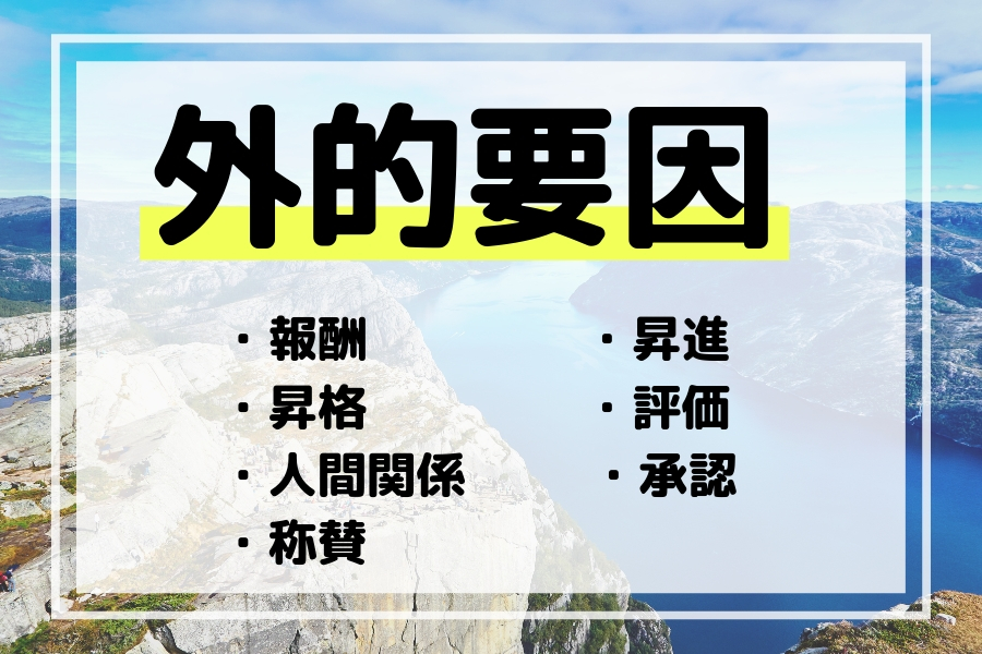 外的要因は、自分の外側から働きかけるものです。つまり、何か外側のものがきっかけとなって起こるモチベーションです。