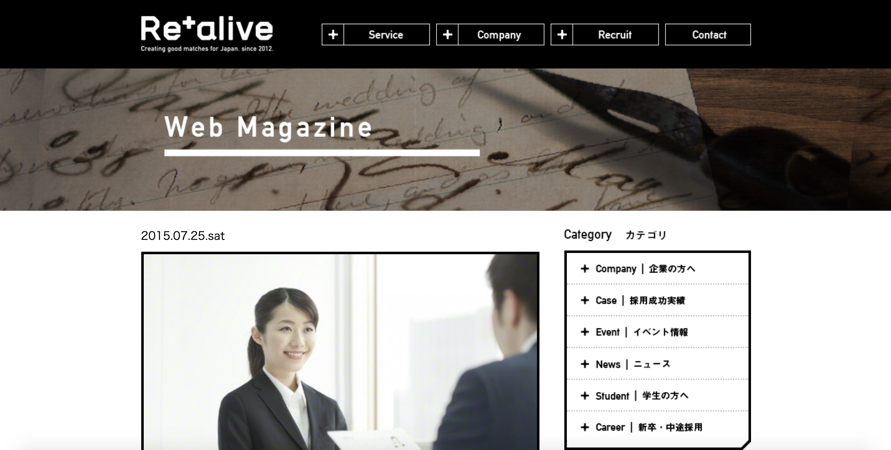 Re Agentは、株式会社リアライブが提供する新卒紹介サービスです。特徴は、強い集客力を持っていること。Re Agentが開催するイベントには、年間15000名を超える学生が訪れています。Re Agentでは、個別に学生を紹介するだけではなく、企業のイベントをサポートしたり、SNSを利用して企業の説明会に学生を集めたりして、母集団を形成します。株式会社リアライブの理念は、「入社3年後のミスマッチをなくす」こと。強い集客力を武器に、学生へ職業に関する情報を収集する機会を与えます。そして、学生の潜在特性を顕在化させてミスマッチを無くす仕組みを目指しているのです。