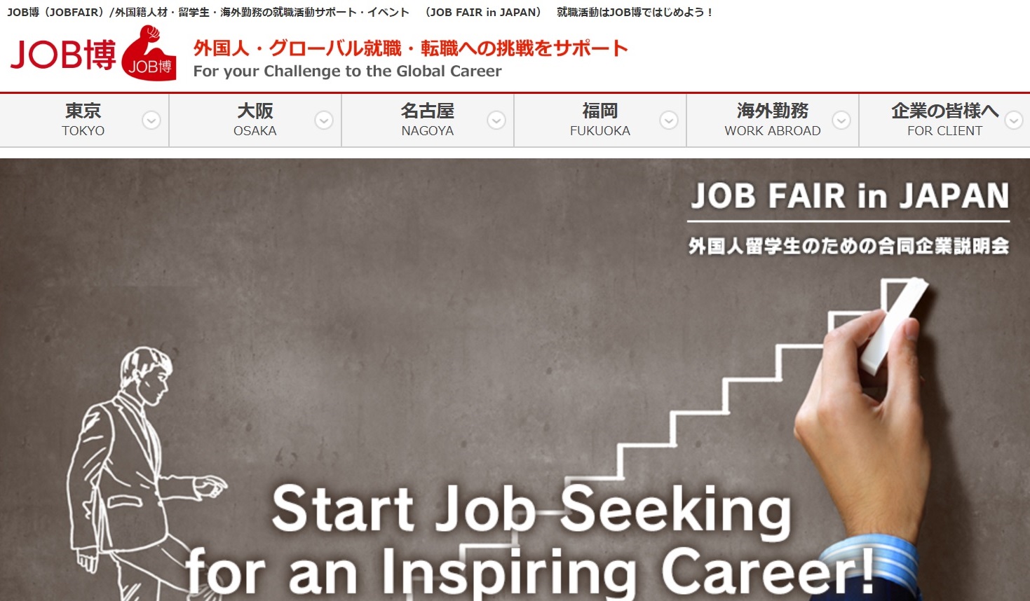 東京・大阪・名古屋で開催される就職フェアを「JOB博」と総称して読んでいます。外国人のための合同企業説明・選考会と題して、外国籍人材を積極的に採用する企業が合同で出展する説明会です。