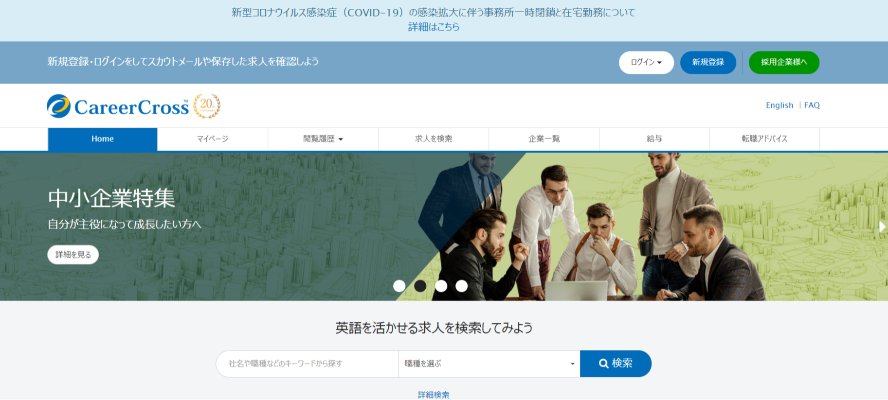 キャリアクロスは株式会社シー・シー・コンサルティングが運営する日本最大級の外資系・グローバル企業に特化した転職求人サイト。常時5,000件以上の求人があり、営業・事務・マーケティング・エンジニア・専門職にいたるまで幅広い職種の求人を扱っており、高年収求人が多いのも特徴。英文履歴書の作成や英語面接対策などの転職活動サポート情報も充実しており、スカウト機能なども搭載されています。自身の語学力や専門性を活かして外資系やグローバル企業に転職したい求職者を対象とします。日本法人の立ち上げ人材、英語での接客の仕事ができる人材、IT人材などの確保が得意。