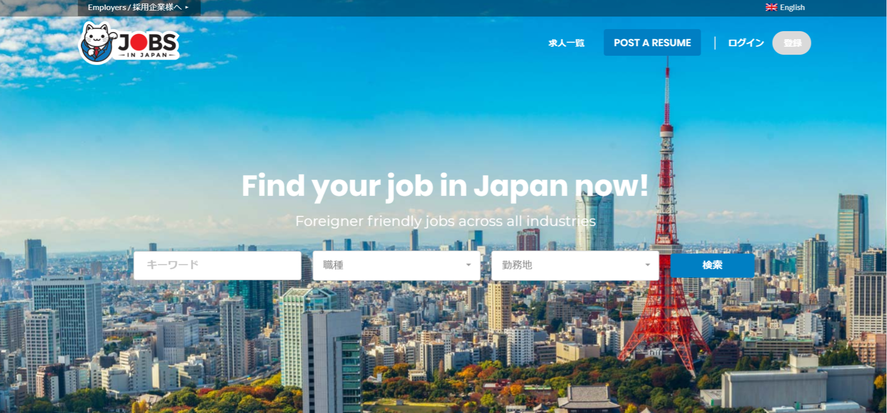 Jobs in JapanはSpectrum Consulting Japan合同会社が運営する外国人向けの求人サイト。他の求人サイトと比べて低下価格で求人情報を掲載できることが特徴です。低コストで求人を掲載できることから比較的、中小企業や小規模のスクール等の求人が多い事も特徴の一つでしょう。Jobsinjapan.comは1985年来日したアメリカ人James Gibbs氏により1998年6月スタートしました。当初は日本に住む外国人向けのガイドブックを作成していました。求人のみならず、住居探しやレストラン、コーヒーショップの情報の提供は外国人にとって生活基盤を作るために好評を得ていました。