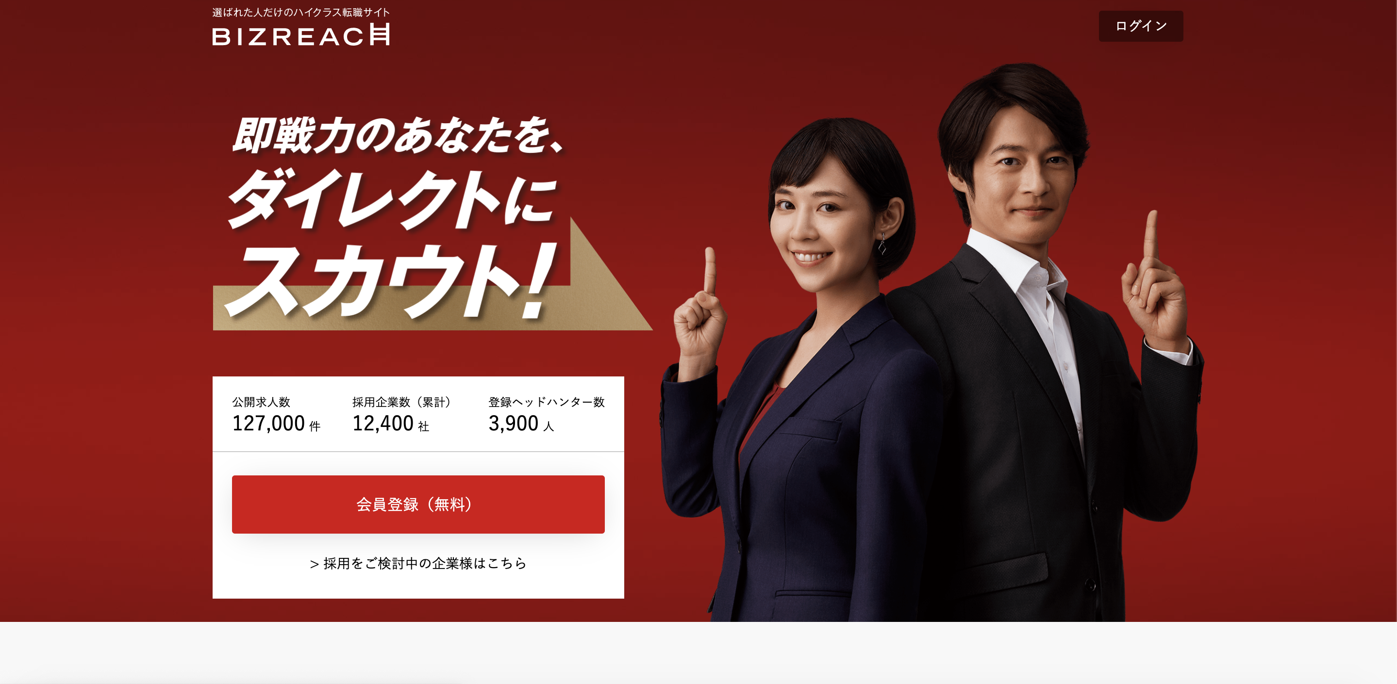 ビズリーチは、企業の中核を担う即戦力人材に特化したスカウトサービスを展開します。2019年9月時点で、登録者数は約91万人にも上ります。そのうち26%がマネジメント経験者であったり、38%が日常会話レベル以上の英会話が可能だったりと、ハイクラスの人材が多数登録していることが強みだと言えるでしょう。事業拡大を目指す中小企業だったり、即戦力のゼネラリストを求めているベンチャー企業だったりと、経営幹部のスカウトを検討している企業におすすめです。