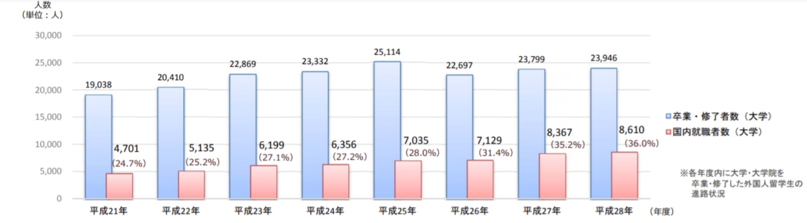 これは、日本企業が外国人留学生を採用し、受け入れる環境を整えている結果と言えるでしょう。