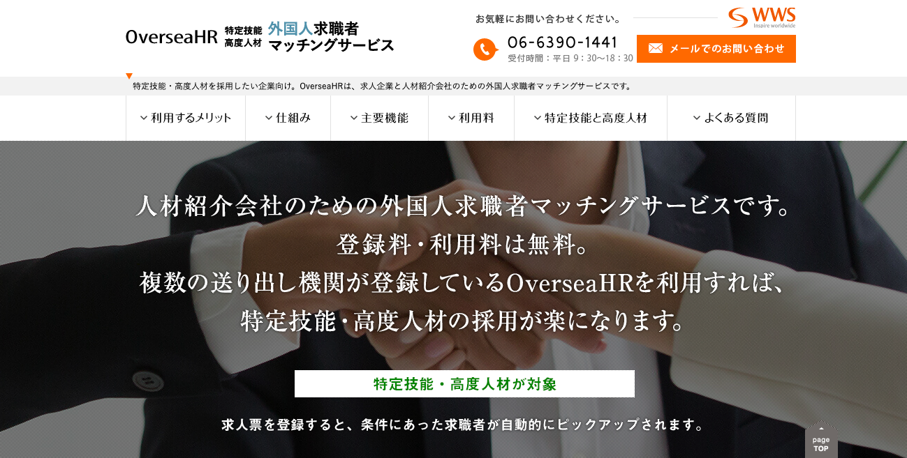 特定技能の対象国の外国人を採用する方法として、OverseaHRを利用するのもいいでしょう。OverseaHRは株式会社World Wide Systemが運営している外国人求職者専門のマッチングサービスサイト。OverseaHRでも特定技能制度を活用し日本で暮らしたいと考えている外国人と外国人労働者を雇用したいと考えている企業をサポートしています。OverseaHRの特徴は登録料や利用料が無料である点でしょう。特定技能制度を利用したいと考えている企業には求人を出したところで実際に応募者が集まるのかと不安に感じている方もいるかもしれません。OverseaHRは成功報酬のみの支払いのため採用活動における損失を抑えることができるでしょう。