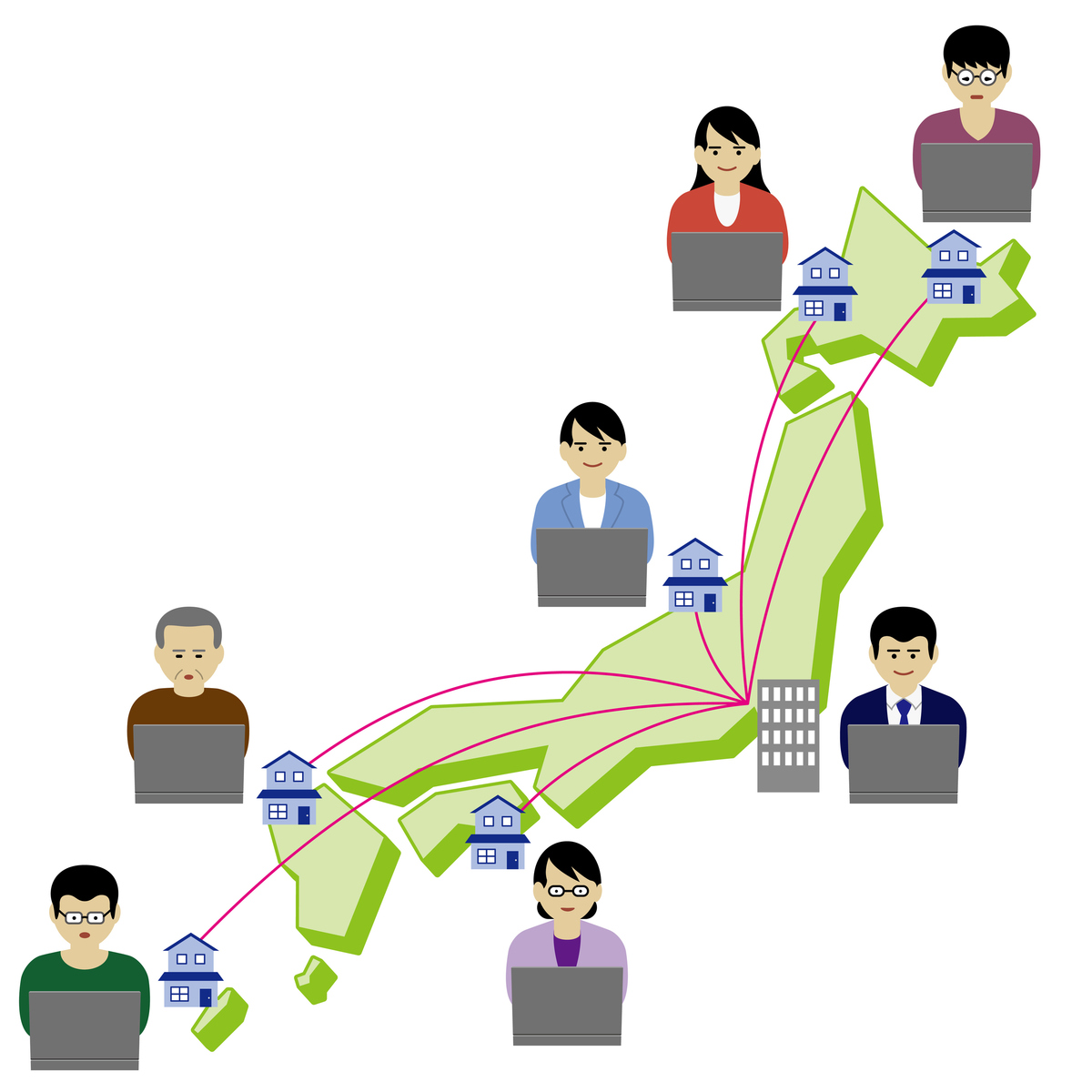 テレワークには3つの勤務形態が定義されています。そのテレワークの定義の一つが在宅勤務。文字通り、自宅においてパソコンや電話、FAXなどを使って勤務する形態です。電話はインターネット回線を利用したIP電話、会議はweb会議システムを導入することで通信費を固定費化することが実現できるでしょう。