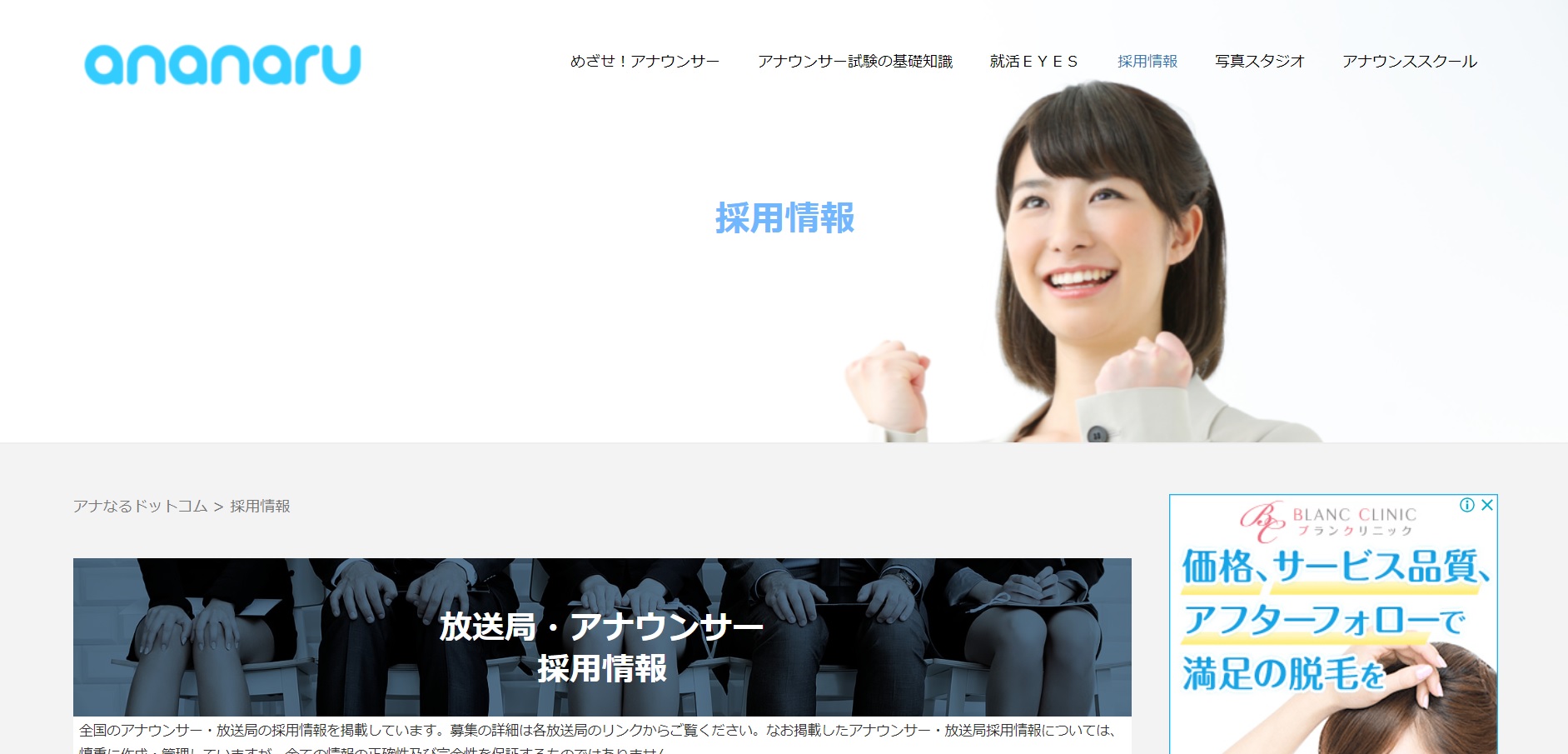 アナなるでは、全国のアナウンサー・放送局の採用情報を掲載しています。写真スタジオやアナウンススクールに関する情報も豊富で、アナウンサー志望の学生は必見の内容となっています。