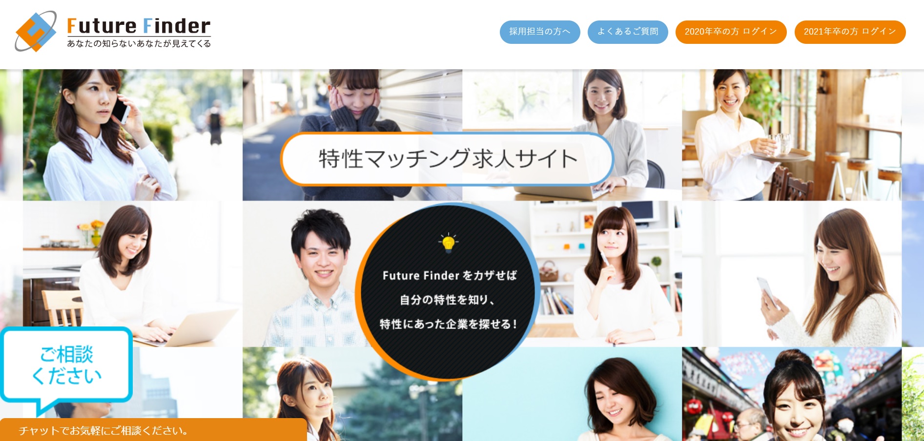 Future finder では、学生が心理統計学に基づく本格的な特性分析を受けることによって適性を知り、その人にマッチした社風を持つ企業を紹介しているサイトです。働き方に悩む学生の一つの指針となり、企業と学生をつなげています。
