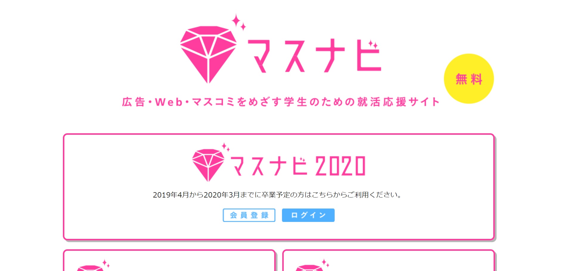 マスナビは広告・Web・マスコミ業界を目指す学生のための就活サイトです。志望業界が定まっている学生にとっては、マスナビのようなサイトは使いやすく、見やすいと感じるでしょう。