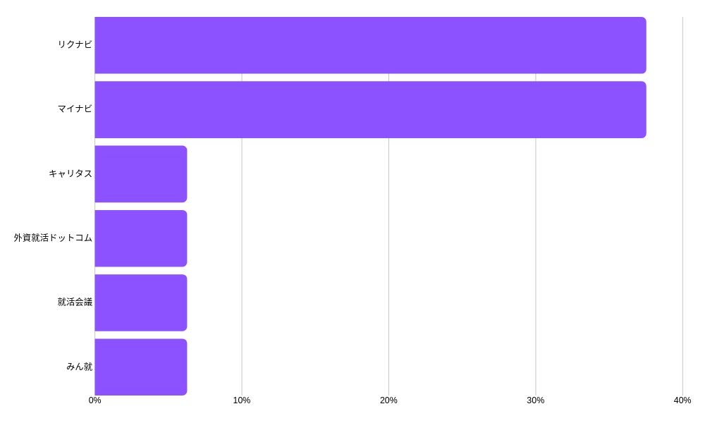 マイナビとリクナビが使いやすいと感じる学生が多いという結果となりました。ほかのサイトに比べて圧倒的な情報量があることや、専用のアプリがあることなどが便利だと感じるようです。