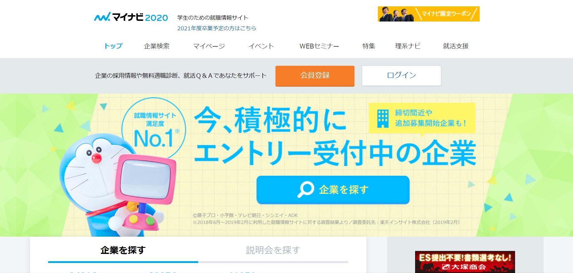 利用者数が多く、使いやすいと感じる人も多いマイナビが1位という結果になりました。大規模なイベントを全国で開催しており、学生満足度も新卒採用サイトの中でトップです。